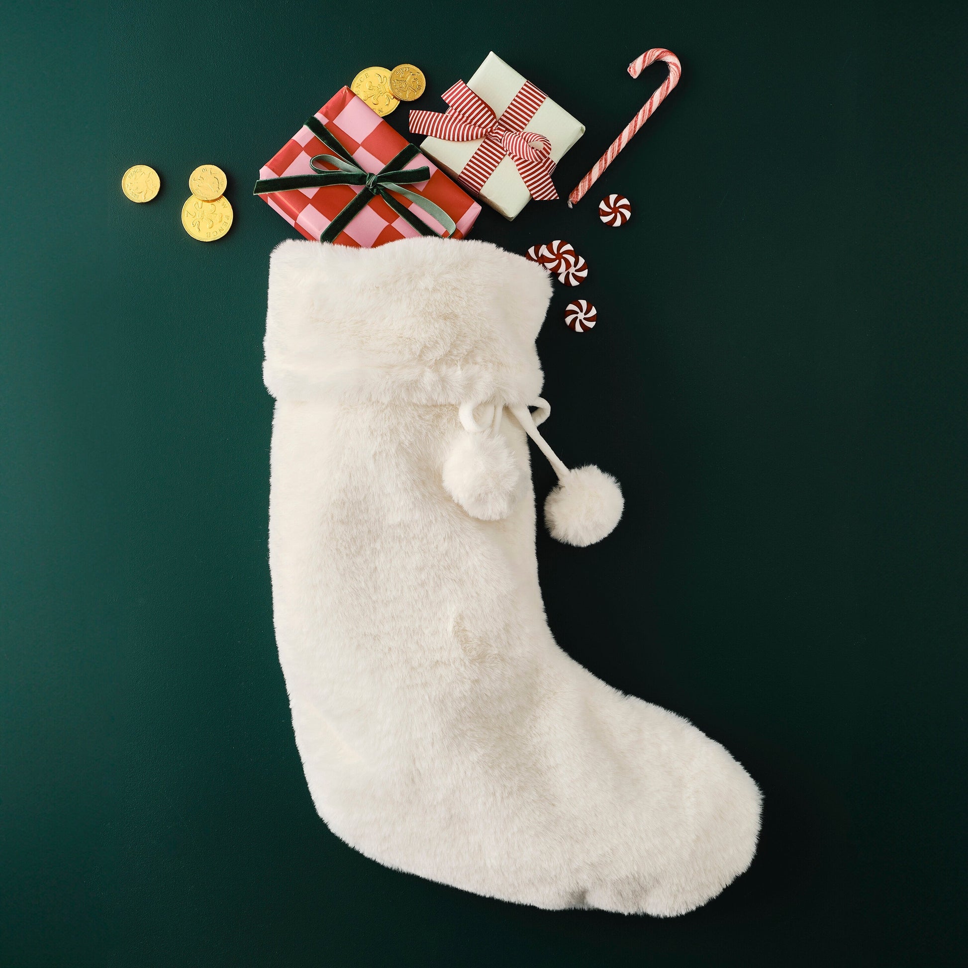 Cream Faux Fur Christmas Stocking- 5 Inner Pack