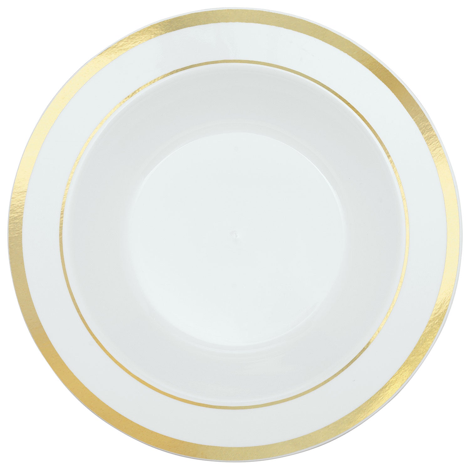 438989 IP X12 - Premium White Plastic Bowls Gold Trim 340ml - 12 PKG/10